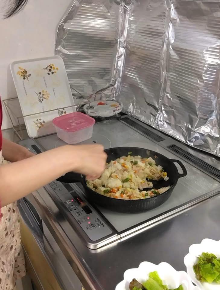 慣れた手つきで炒めていらっしゃいました。