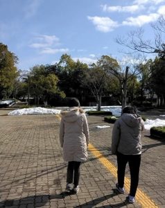 車で近くの公園へ行き、散歩しました。